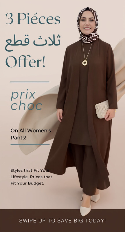 يتكون من كارديجان (سترة) طويل ينسدل بنعومة ليمنحك مظهراً ممشوقاً، مع قطعة علوية متناغمة وبنطلون واسع بقصة احترافية تضمن لكِ حرية كاملة في الحركة.