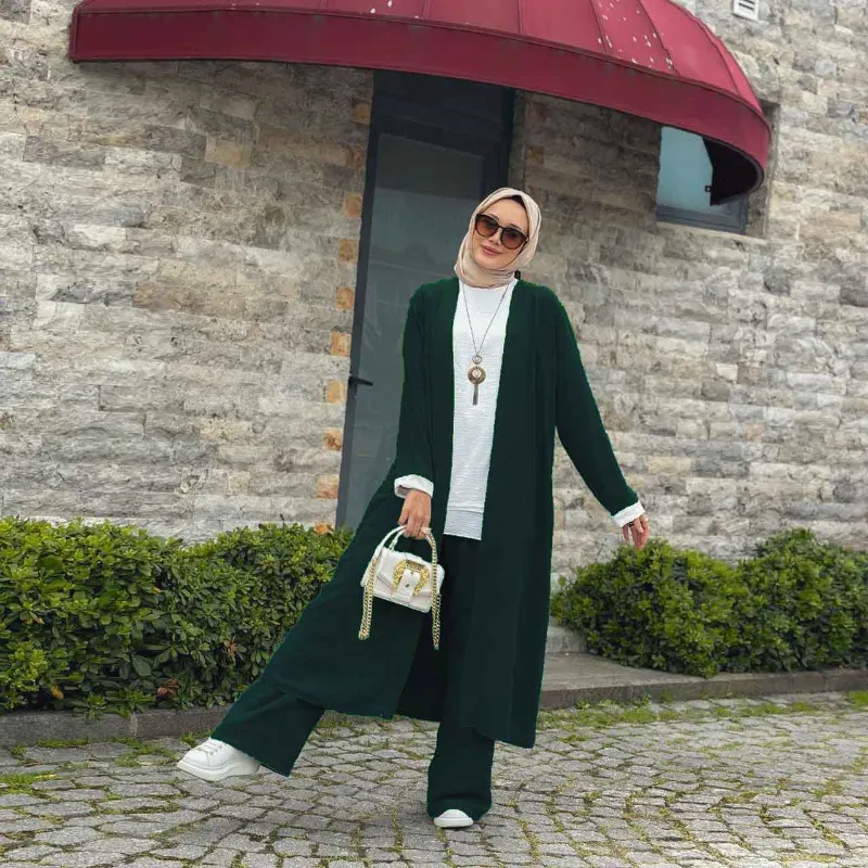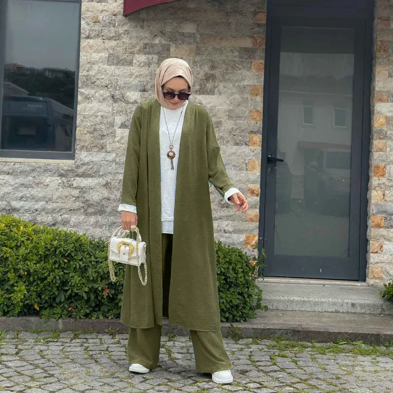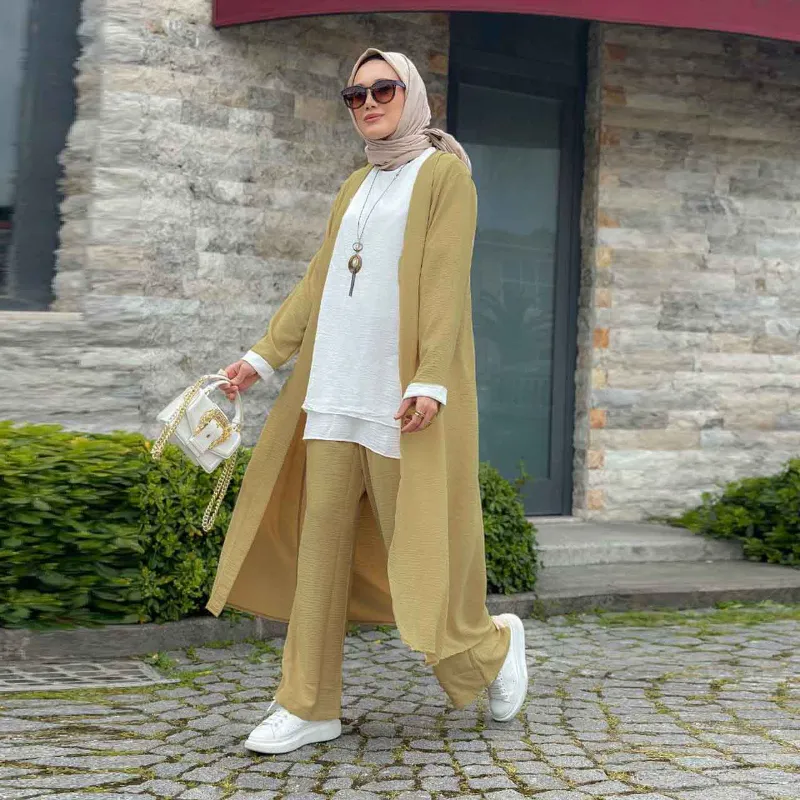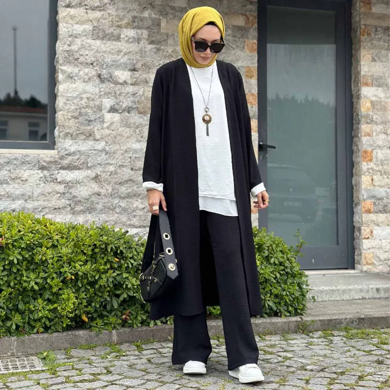 Ensemble femme 3 pièces – Pantalon, kimono et chemise légère